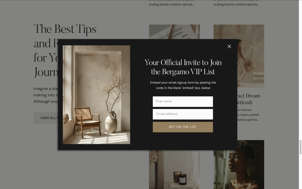 “Join the list for honest website tips, behind-the-scenes design notes, and resources I usually only share with clients.”