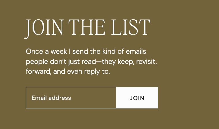 But—and this is important—it only works if your emails are actually worth it. A vague “subscribe for updates” isn’t doing anything for you. It feels empty. You need a point of view.